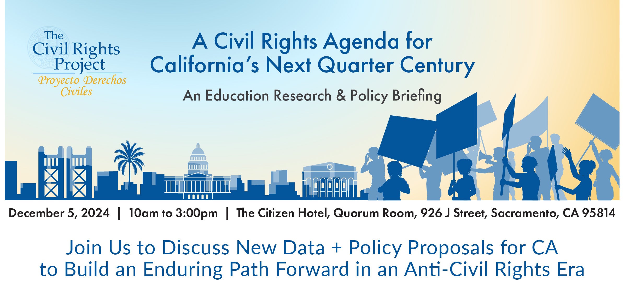 News Dec 5, 2024 Join Us to Discuss New Data + Policy Proposals for CA to Build an Enduring Path Forward in an Anti-Civil Rights Era SEE THE PROGRAM AND SCHEDULE Facebook Twitter Bluesky Linkedin Envelope