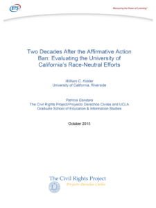 - “Two Decades After the Affirmative Action Ban: Evaluating the University of California’s Race-Neutral Efforts,” by William C. Kidder (UC Riverside) and Patricia Gándara (UCLA, CRP Co-director).